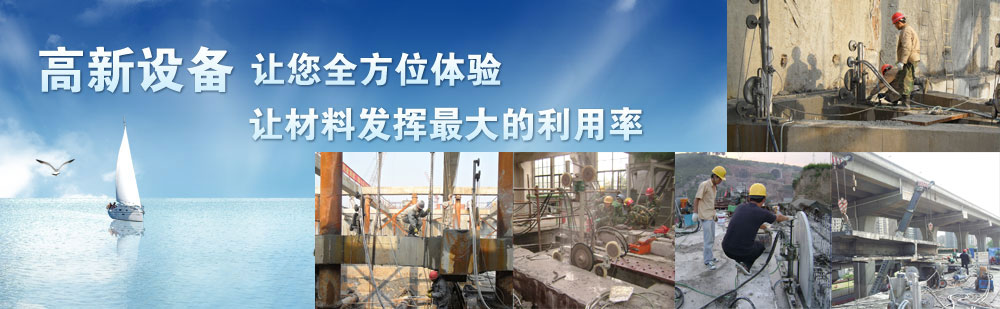 擁有自行研發(fā)生產(chǎn)的專業(yè)性混凝土切割機設(shè)備:液壓繩鋸機8臺、液壓墻鋸機4臺、液壓鉆孔機10臺,電動鉆孔機20臺
